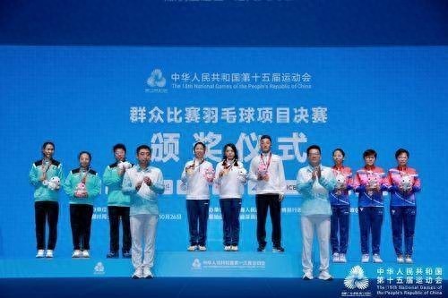 赵凯欣/任建蓉组合(中)取得第十五届全运会专家比赛羽毛球口头C组女双金牌。受访者供图